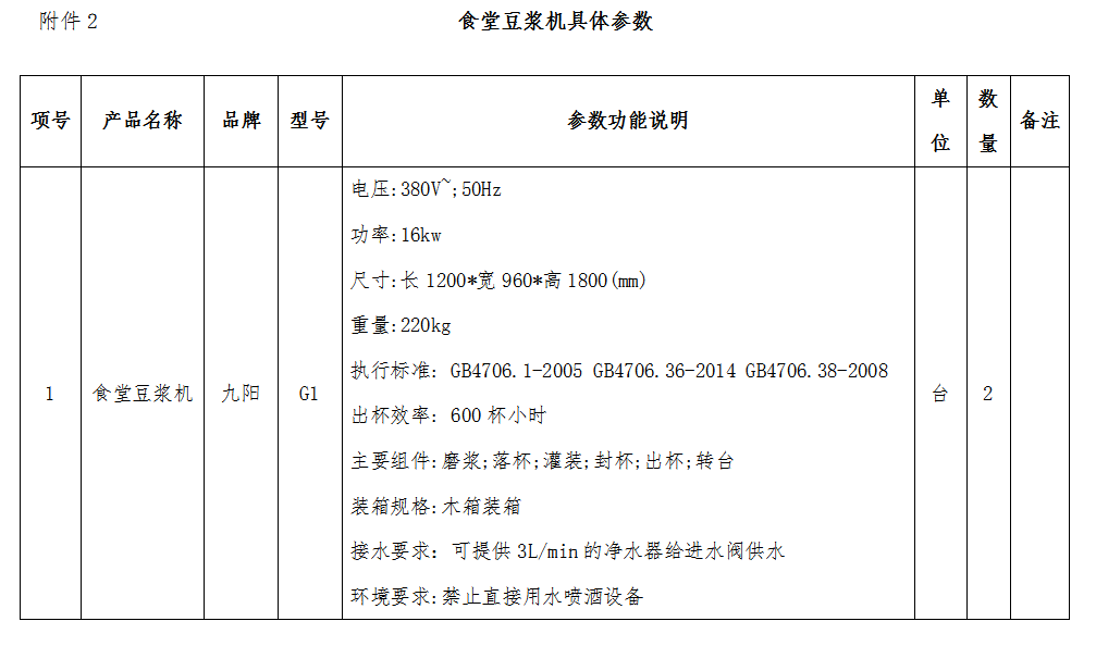 食堂豆?jié){機2臺,具體參數(shù)詳見附件2;
