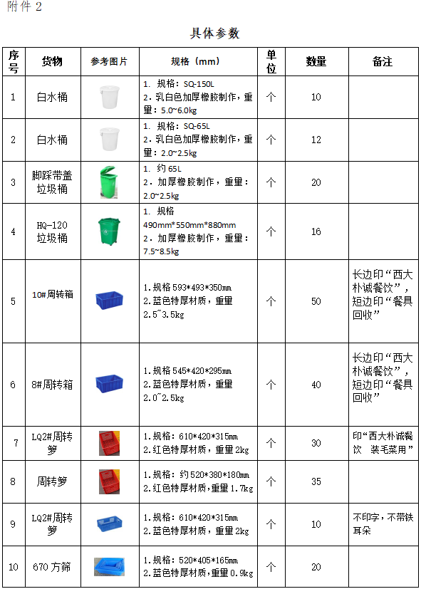 塑料制品一批,具體參數(shù)詳見附件2;