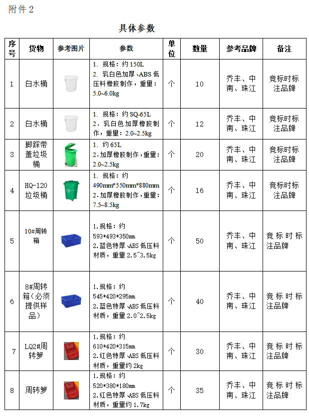 塑料制品一批,具體參數(shù)詳見(jiàn)附件2;