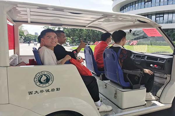 ? 六月畢業(yè)季,為給畢業(yè)的西大學(xué)子提供便利服務(wù),樸誠(chéng)公司黨支部成立了黨員服務(wù)隊(duì),在6月24日至6月26日08:00—18:00,全體黨員及入黨積極分子開著公司的工作車在畢業(yè)生宿舍樓下等候,畢業(yè)生看到工作車即可招手上車,黨員服務(wù)隊(duì)會(huì)為畢業(yè)生提供免費(fèi)接送及行李搬運(yùn)服務(wù)。