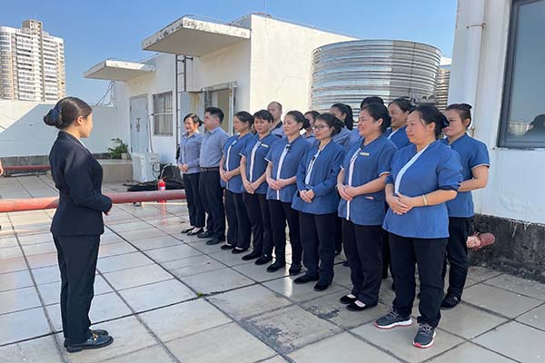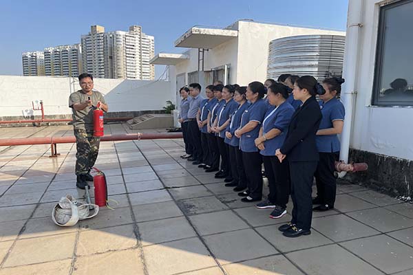 覃老師根據(jù)酒店的實(shí)際情況,向大家講解了火災(zāi)的預(yù)防措施、初期火災(zāi)撲救常識、疏散逃生知識及如何正確操作使用滅火器、水帶等基本常識,并現(xiàn)場示范指導(dǎo)使用滅火器和水帶。講解完畢,員工們依次實(shí)操使用滅火器和水帶,做到人人會用滅火器及水帶。