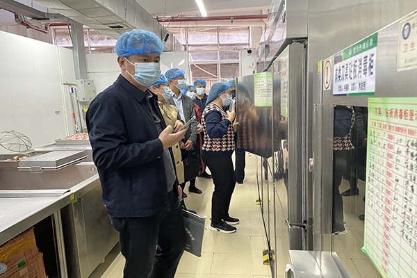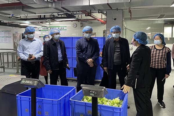 檢查組一行在校黨委常委、副校長劉向的陪同下,檢查了凈菜加工中心和秀苑餐廳,對學(xué)校食堂的食材加工環(huán)境、設(shè)備、流程等各方面進(jìn)行詳細(xì)地檢查,了解關(guān)于廣西大學(xué)對食品安全工作的落實情況,并針對一些做法提出了更好的改進(jìn)意見。